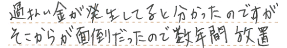 個人で過払い金請求をしようと考え、取引履歴を取り寄せ引き直し計算。過払い金があるとわかるも、そこから面倒に感じて数年間放置。時効になってないか心配でした。