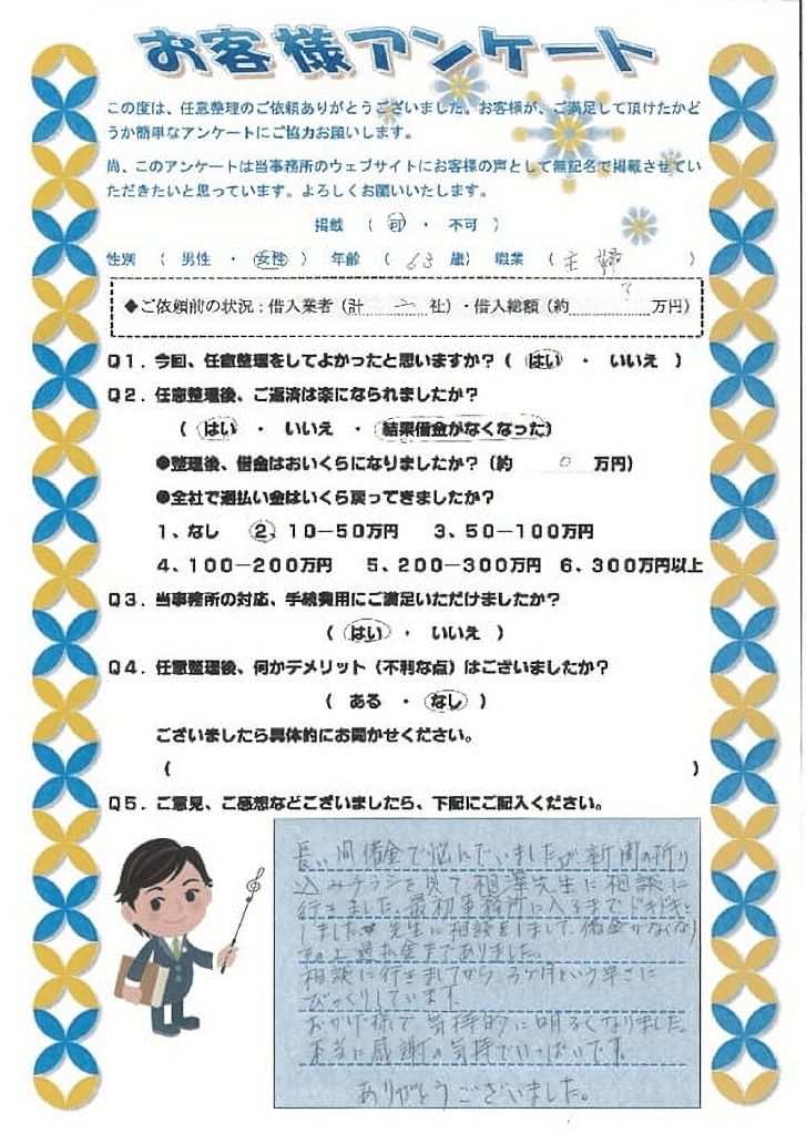 先の見えない不安が任意整理をしていただいたお陰で見えて来た
